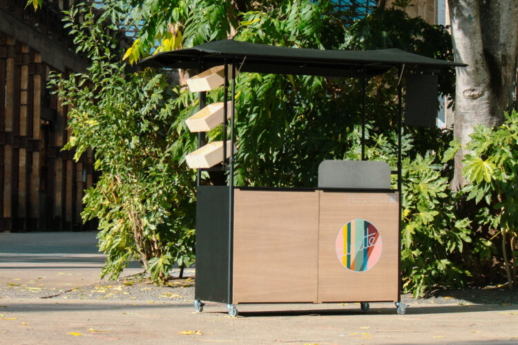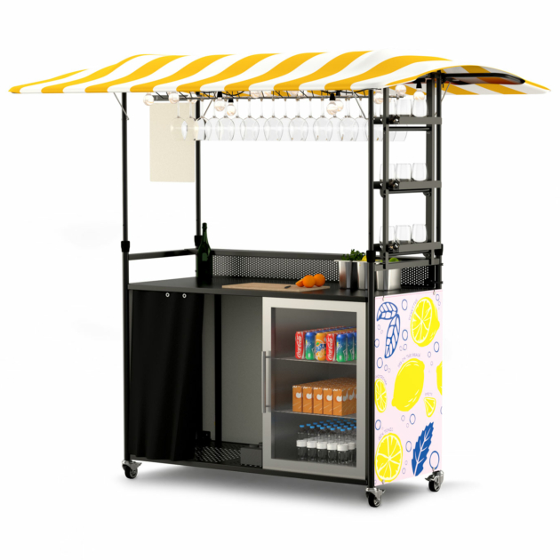 Stand / chariot d'animation et de vente mobile 100% pliable et personnalisable pour créer l'évènement en toute situation ! Lancez rapidement votre concept ou développez la vente à emporter sur n'importe quel terrain : salon, festival, foire, marché, exposition, entreprise, terrasse, espace public etc.