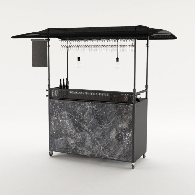 Par sa conception intelligente et modulaire, le stand pliable de Dinettes vous offre une multitude d’usages, quel que soit votre métier. Dans le domaine CHR, utilisez votre stand pour la vente à emporter : crêpes / gaufres, hot-dogs, bagels, etc. Nos caissons de grande contenance logent aisément divers matériels traiteur tels que des réfrigérateurs, congélateurs ou conteneurs isothermes. Grâce aux nombreux accessoires disponibles, le stand pliable devient en moins de 10 minutes un bar mobile : porte-menu, comptoir de bar amovible, porte-verres… Très facilement transportable, il peut être monté par une personne seule en intérieur comme en extérieur : dans la rue, dans un centre commercial, une gare ou un aéroport, sur un salon professionnel ou encore à l’occasion d’un événement sportif ou culturel.